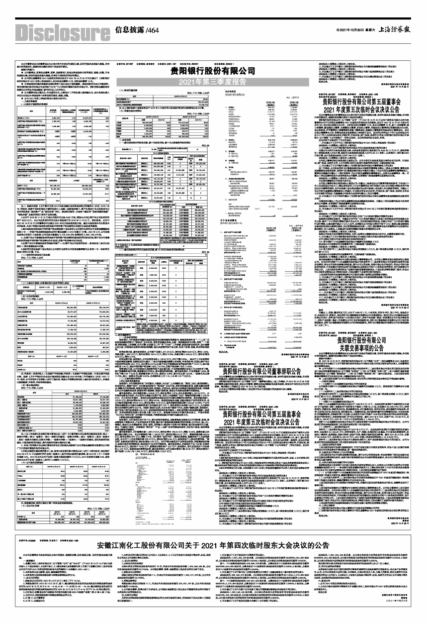 ● 公司第五届董事会2021年度第五次临时会议于2021年10月29日审议通过了《贵阳银行股份有限公司2021年第三季度报告》,会议应表决董事13名,实际表决董事13名。