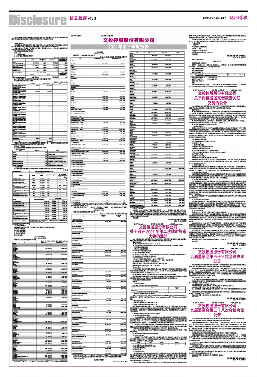 公司于2021年10月29日召开九届董事会第五十六次会议,审议通过了《关于向控股股东借款暨关联交易的议案》,同意公司拟向控股股东文资控股新增不超过人民币10亿元借款,用于充实公司流动资金并偿还到期债务。本次借款的期限为股东大会审议通过该事项之日起不超过36个月,借款利率为不超过年化9%,并申请授权公司管理层在股东大会审议通过该事项之日起12个月内,执行具体工作并签署相关法律文件。公司可根据资金实际使用情况提前还款。