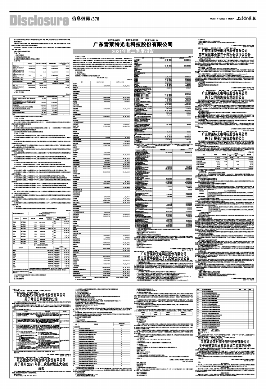 广东雪莱特光电科技股份有限公司2021年第三季度报告