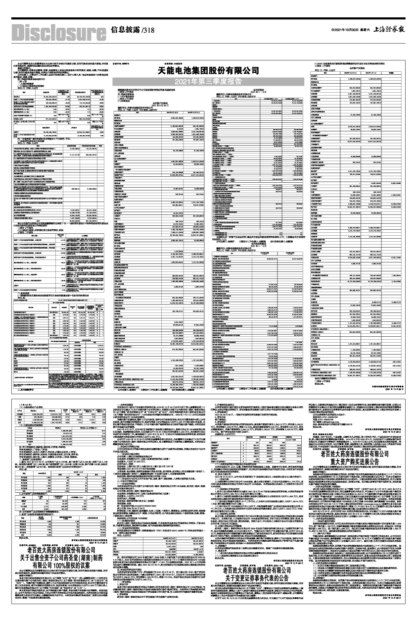 天能电池集团股份有限公司2021年第三季度报告