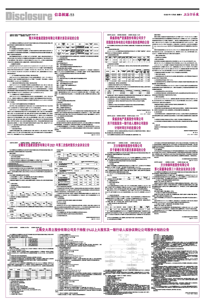 3、2021年2月5日,公司披露了《荣盛房地产发展股份有限公司关于控股股东一致行动人增持公司股份的公告》(公告编号:临2021-022),荣盛创投拟自2021年2月4日起的6个月内,增持公司股份金额不低于人民币10,000万元。截至2021年8月3日,荣盛创投已通过集中竞价交易方式增持公司股份45,346,721股,累计增持金额27,670.76万元,该次增持计划已实施完成。