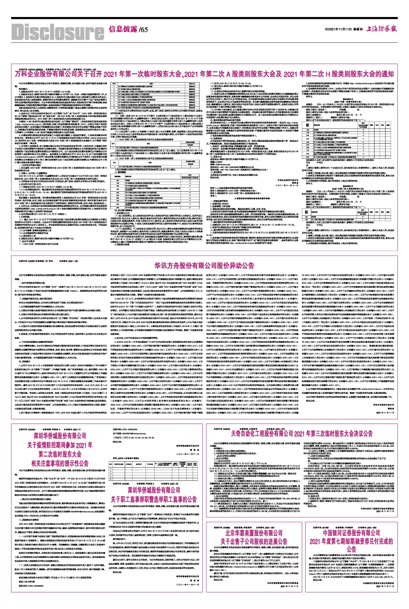 4、本通知按照《深圳证券交易所股票上市规则》要求编制,H股股东可参考。H股股东如参加本次股东大会,请详阅本公司于2021年11月10日在香港联合交易所有限公司网站(www.hkexnews.hk)发布的《2021年第一次临时股东大会及2021年第二次H股类别股东大会通告》(以下简称“临时股东大会通告”)等文件。