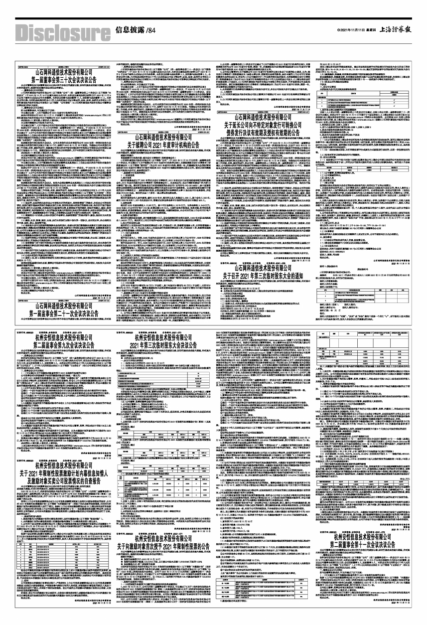 杭州安恒信息技术股份有限公司(以下简称“公司”)第二届监事会第九次会议于2021年11月5日以邮件、电话方式发出通知,2021年11月10日以通讯表决方式召开,会议由公司监事会主席冯旭杭先生主持,会议应到监事3人,实到监事3人。本次会议的召开符合《中华人民共和国公司法》(以下简称“《公司法》”)、《中华人民共和国证券法》(以下简称“《证券法》”)和《公司章程》的有关规定,表决所形成决议合法、有效。