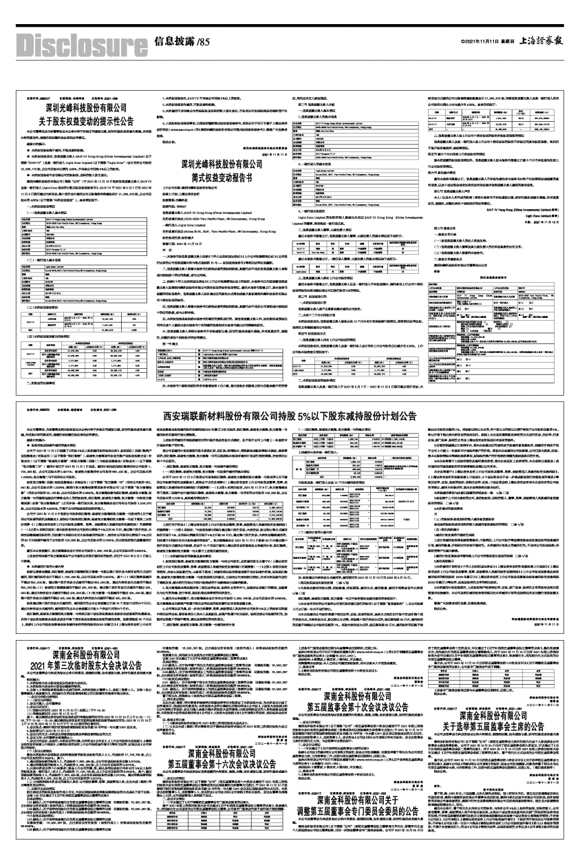 深圳光峰科技股份有限公司(简称“公司”)于2021年11月10日收到信息披露义务人SAIF IV及其一致行动人Light Zone发来的《简式权益变动报告书》,SAIF IV于2021年5月7日至2021年11月9日期间通过大宗交易、集中竞价合计减持公司无限售条件流通股共计21,084,816股,占公司总股本的4.66%(以下简称“本次权益变动”)。具体情况如下: