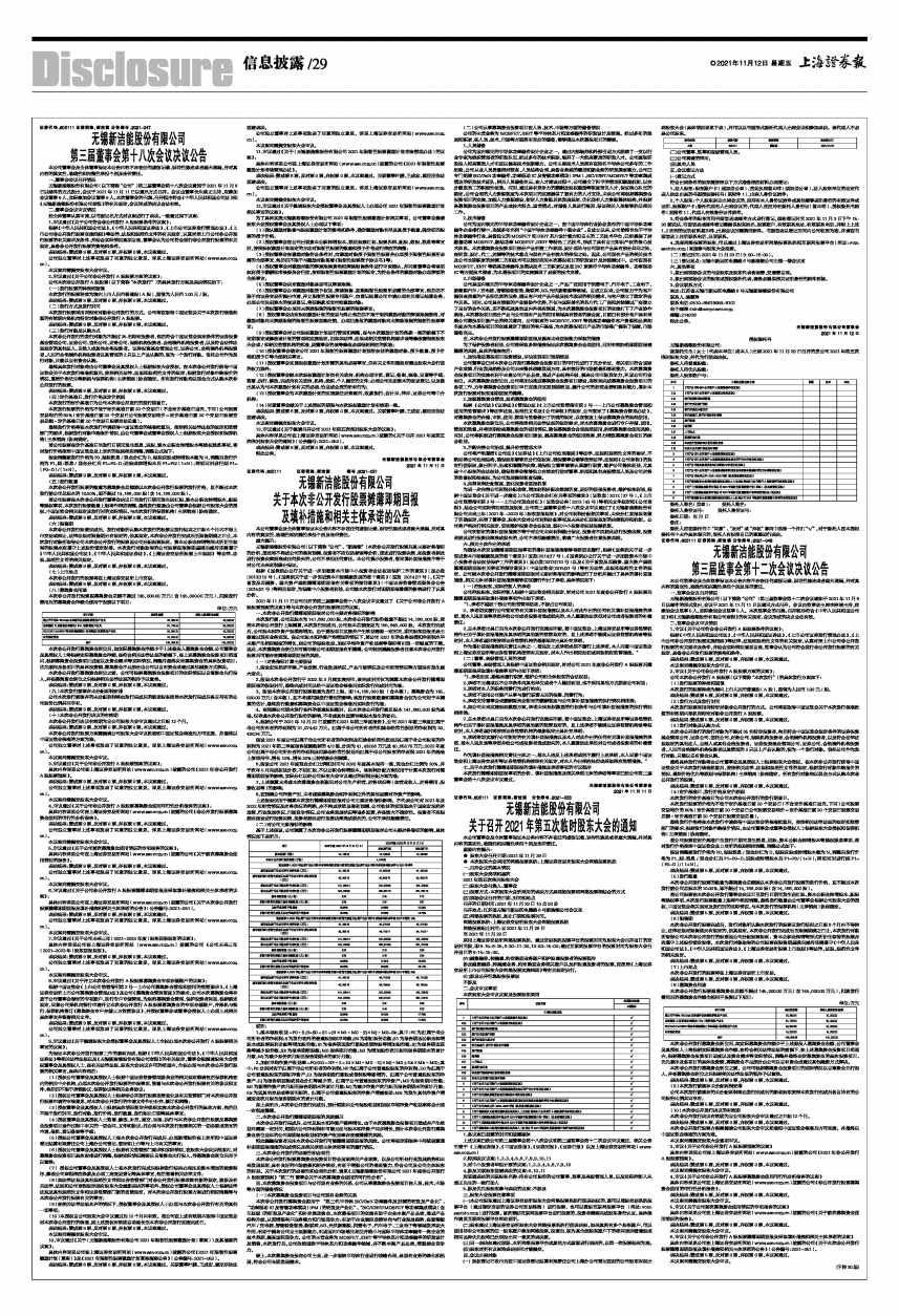 无锡新洁能股份有限公司(以下简称“公司”)第三届监事会第十二次会议通知于2021年11月6日以邮件的形式发出,会议于2021年11月11日以通讯方式召开。会议由监事会主席李宗清主持,应参加会议监事5人,实际参加会议监事5人。本次监事会的召集、召开程序符合《中华人民共和国公司法》和《无锡新洁能股份有限公司章程》的有关规定,会议形成的决议合法有效。