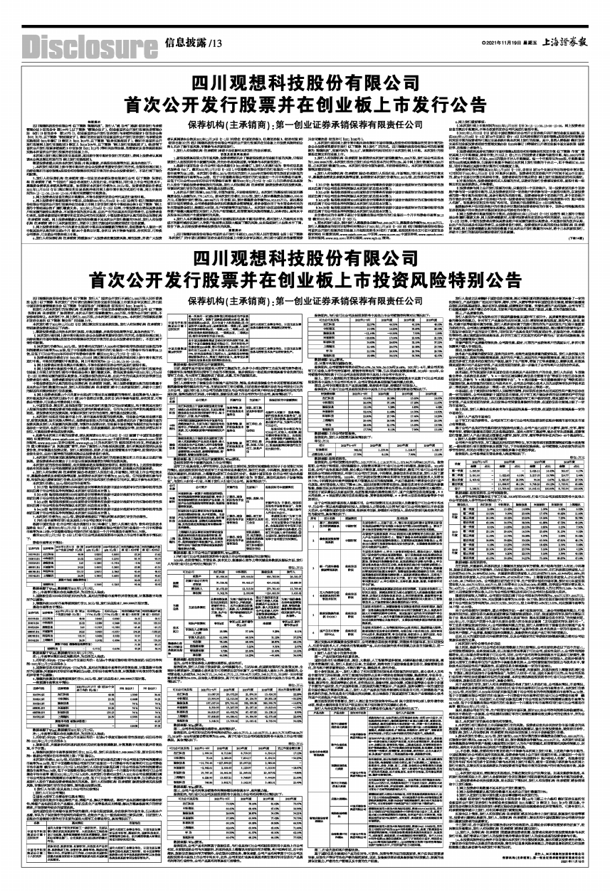 四川观想科技股份有限公司(以下简称“发行人”)首次公开发行不超过2,000万股人民币普通股(A股)(以下简称“本次发行”)的申请已经深圳证券交易所创业板上市委员会审议通过,并已经中国证券监督管理委员会(以下简称“中国证监会”)同意注册(证监许可[2021]3285号)。