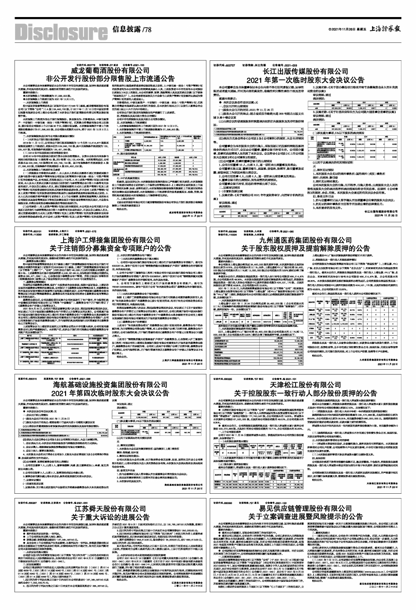 易见供应链管理股份有限公司(以下简称“公司”)于2021年5月14日收到中国证券监督管理委员会(以下简称“中国证监会”)对公司的《调查通知书》(中证调查字2021030002号),因公司涉嫌信息披露违法违规,根据《中华人民共和国证券法》的有关规定,决定对公司进行立案调查,具体详见公司于2021年5月15日披露的《关于收到中国证监会调查通知书的公告》(公告编号:2021-042)及分别于2021年6月22日、7月20日、8月24日、9月25日、10月26日披露的《关于立案调查进展暨风险提示的公告》(公告编号:2021-051、2021-074、2021-088、2021-098、2021-113)。
