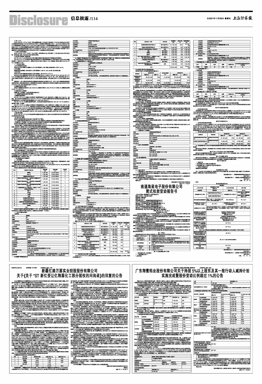 三、依据《中华人民共和国证券法》、《上市公司收购管理办法》、《公开发行证券的公司信息披露内容与格式准则第15号一一权益变动报告书》的规定,本报告书已全面披露了信息披露义务人在南通海星电子股份有限公司中拥有权益的股份变动情况。