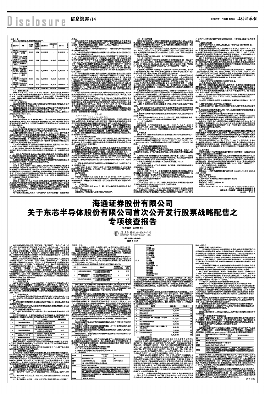 根据《中华人民共和国公司法》、《中华人民共和国证券法》、《证券发行与承销管理办法》(2018年修订)(以下简称“《管理办法》”)、《科创板首次公开发行股票注册管理办法(试行)》、《上海证券交易所科创板股票发行与承销实施办法》(以下简称“《实施办法》”)、《上海证券交易所科创板发行与承销规则适用指引第1号——首次公开发行股票》(上证发〔2021〕77号)(以下简称“《承销指引》”)、《注册制下首次公开发行股票承销规范》(中证协发〔2021〕213号)(以下简称“《承销规范》”)、《上海证券交易所科创板股票公开发行自律委员会促进证券公司优化科创板股票发行承销工作行业倡导建议》(以下简称“《倡导建议》”)等有关法律、法规和其他相关文件的规定,主承销商针对东芯半导体股份有限公司首次公开发行股票战略配售资格进行核查,出具本核查报告。