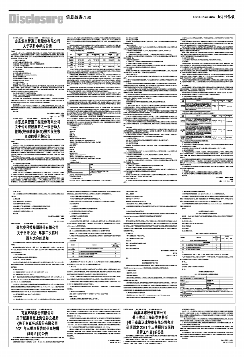 1、2021年11月29日,公司控股股东之一致行动人王维华与公司实际控制人许培锋签署了《王维华与许培锋关于山东龙泉管道工程股份有限公司之股份转让协议》,许培锋以人民币226,671,880.50元的价格(即每股4.5元)受让王维华持有的龙泉股份无限售流通股股份50,371,529股,约占龙泉股份总股本的8.89%;同日,公司控股股东之一致行动人刘长杰与公司实际控制人许培锋签署了《刘长杰与许培锋关于山东龙泉管道工程股份有限公司之股份转让协议》,许培锋以人民币105,904,525.50元的价格(即每股4.5元)受让刘长杰持有的龙泉股份无限售流通股股份23,534,339股,约占龙泉股份总股本的4.15%。
