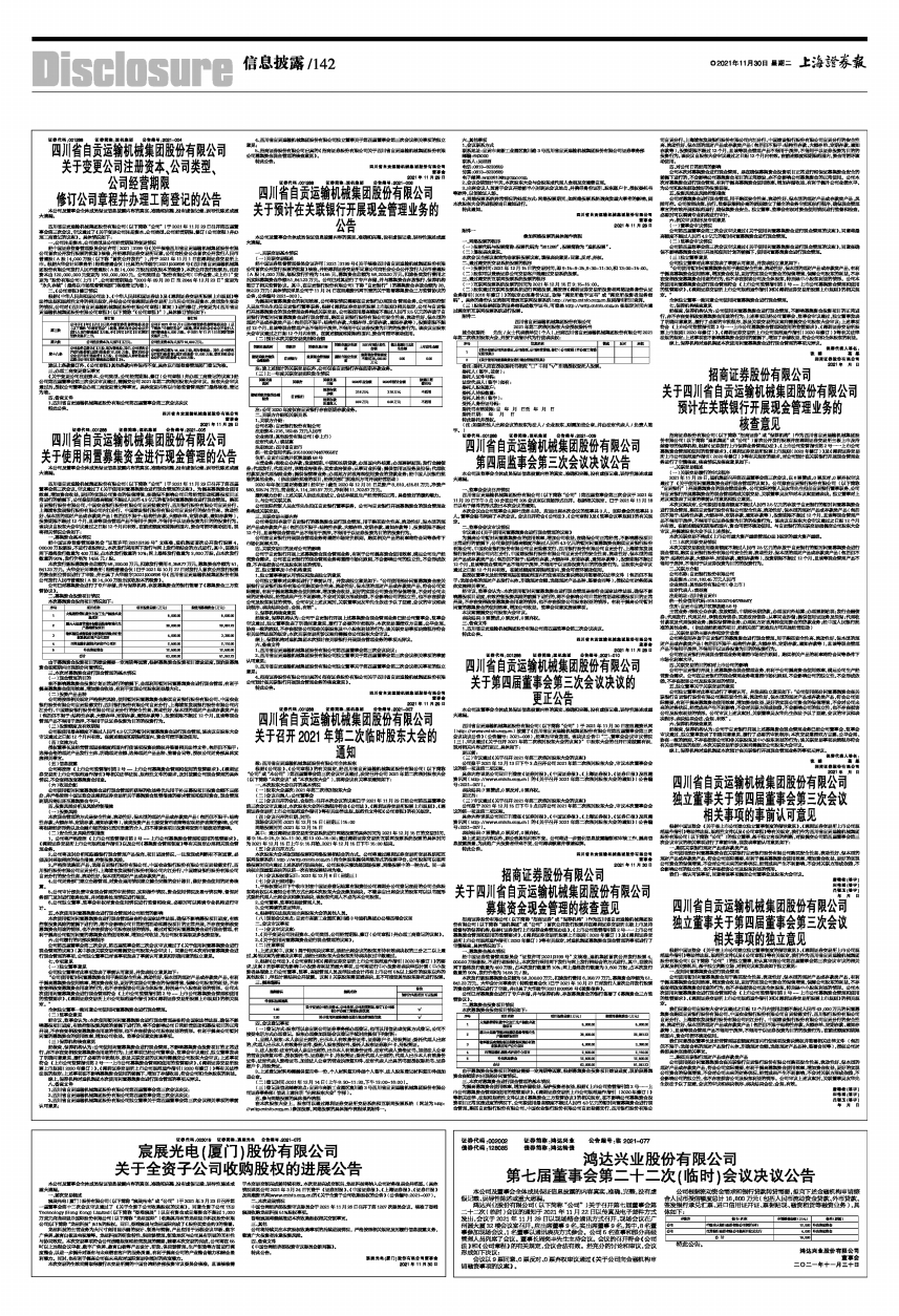 5、招商证券股份有限公司出具的《招商证券股份有限公司关于四川省自贡运输机械集团股份有限公司募集资金现金管理的核查意见》。