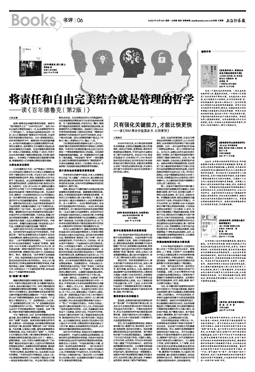 面对当今世界各国、各地区相互间激烈的经济发展竞争,中国的企业管理迫切需要吸收、实践世界先进的管理理论和经验,并结合中国的实际情况创造出具有中国特色的管理理论和经验。德鲁克本人也曾说:“中国发展的核心问题,是培养一批卓有成效的管理者……他们应该是中国自己培养的管理者,熟悉并了解自己的国家和人民,并深深根植于中国的文化、社会和环境。只有中国人才能发展中国。”就此而言,《百年德鲁克》也在提示我们:纪念德鲁克的最好方式就是学习、借鉴他的管理思想。