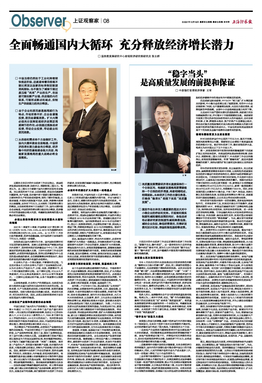 □ 高质量发展需要经济增长速度保持在一个合理区间,构建新发展格局更需要维持一个合理的经济增速,两者相辅相成、相得益彰。未来经济工作的主要任务是,在确保“稳增长”前提下实现“高质量发展”。