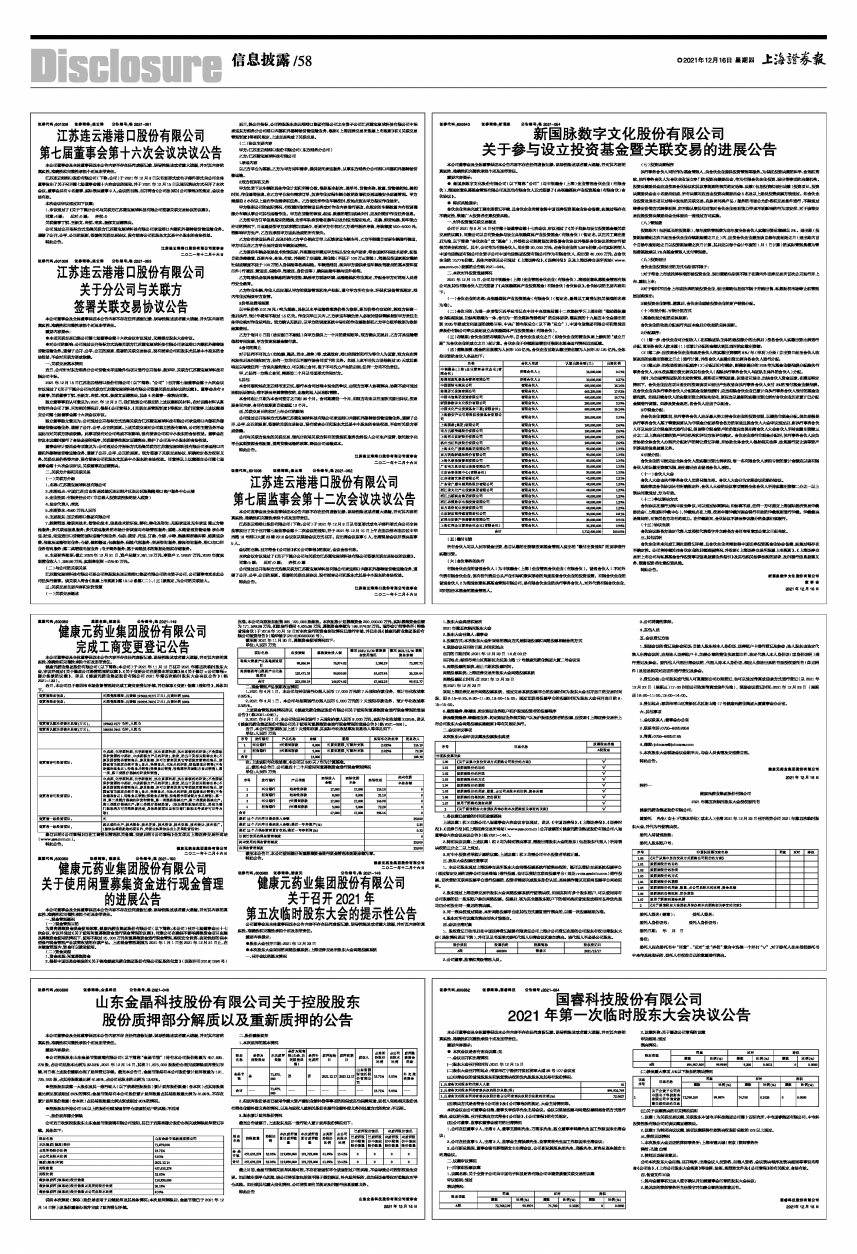 证券代码:601008 证券简称:连云港 公告编号:临2021-063