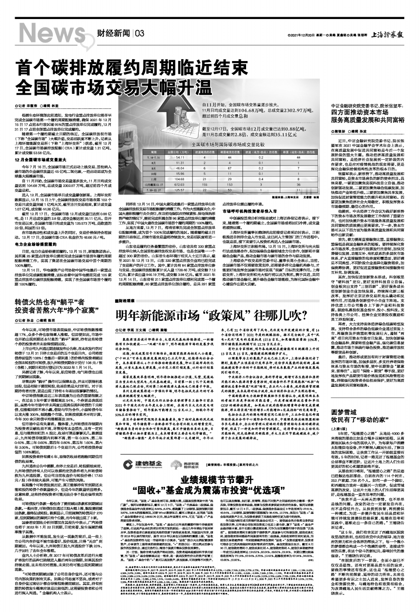 目前,电力企业纷纷提前履约。12月15日,浙能集团表示,其所属25家重点排放单位提前完成全国碳市场首年履约周期配额清缴工作,实现了集团在全国碳市场交易中首个周期的100%履约。