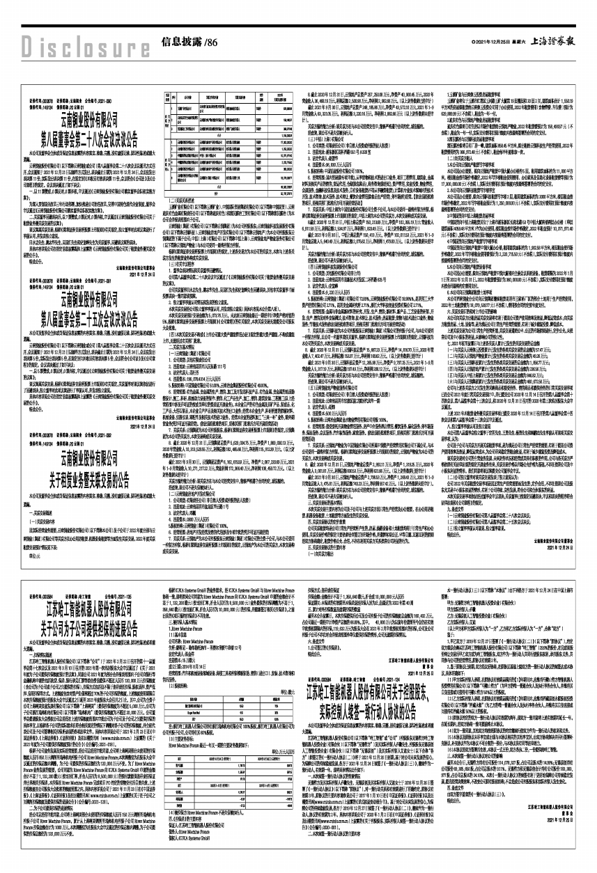 根据子公司业务发展及实际经营需要,经公司总经理审批同意,公司将上海柯灵部分未使用的担保额度人民币850万元调剂至瑞弗机电控股子公司River Machine France;本次调整仅为在股东大会审议通过的担保总额内调整,为子公 司提供的担保总额仍为120,000万元不变。为了River Machine France业务发展的需要,公司同意为River Machine France向KUKA Systems GmbH申请的金额合计不高于1,132,200欧元(按当时汇率,折合人民币为8,500,000元)的预付款提供连带责任保证并出具相关担保函,本担保在River Machine France完成项目PO约定的货物交付后自然失效,上述担保额度在公司股东大会批准的额度范围之内。具体内容详见公司于2021年11月23日在《中国证券报》、《上海证券报》、《证券时报》及在巨潮资讯网(www.cninfo.com.cn)上披露的《关于在子公司之间调剂担保额度及提供担保的进展公告》(公告编号:2021-128)。