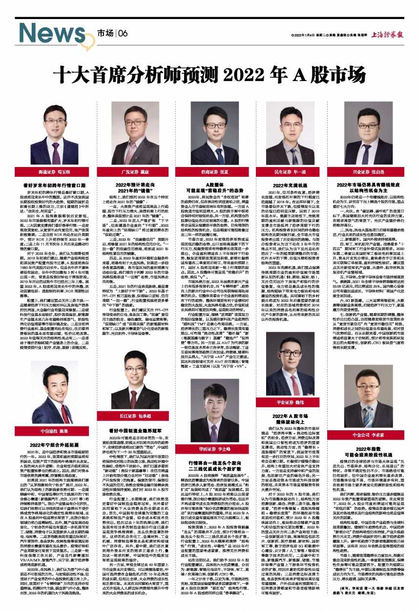 十大首席分析师预测2022年A股市场