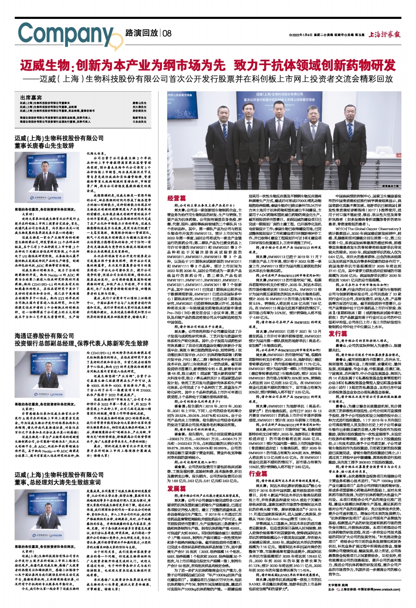 ——迈威(上海)生物科技股份有限公司首次公开发行股票并在科创板上市网上投资者交流会精彩回放