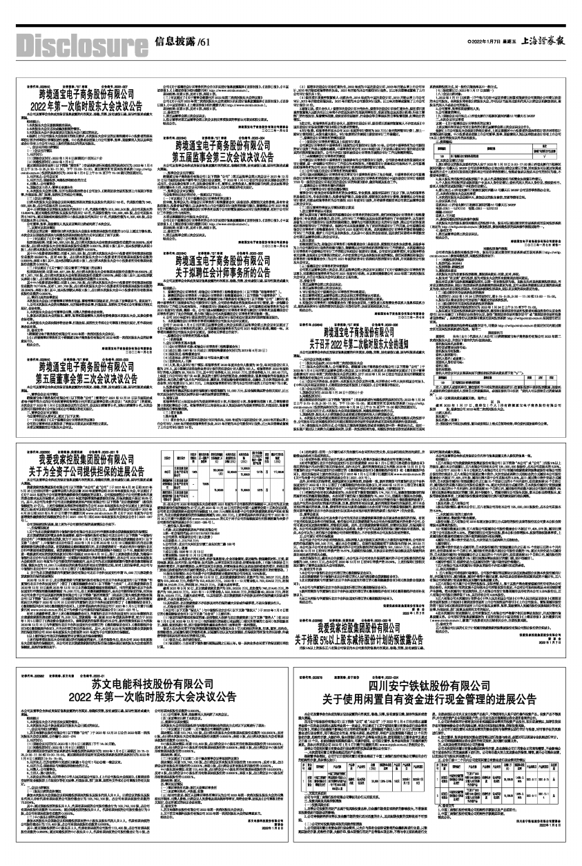 跨境通宝电子商务股份有限公司(以下简称“公司”)董事会于2021年12月31日以书面送达或者电子邮件等方式向公司全体董事和监事发出召开第五届董事会第三次会议(“本次会议”)的通知。本次会议于2022年1月6日以现场会议的方式召开,会议应出席董事9名,实际出席董事9名。本次会议的召开程序符合《公司法》和《公司章程》的有关规定。