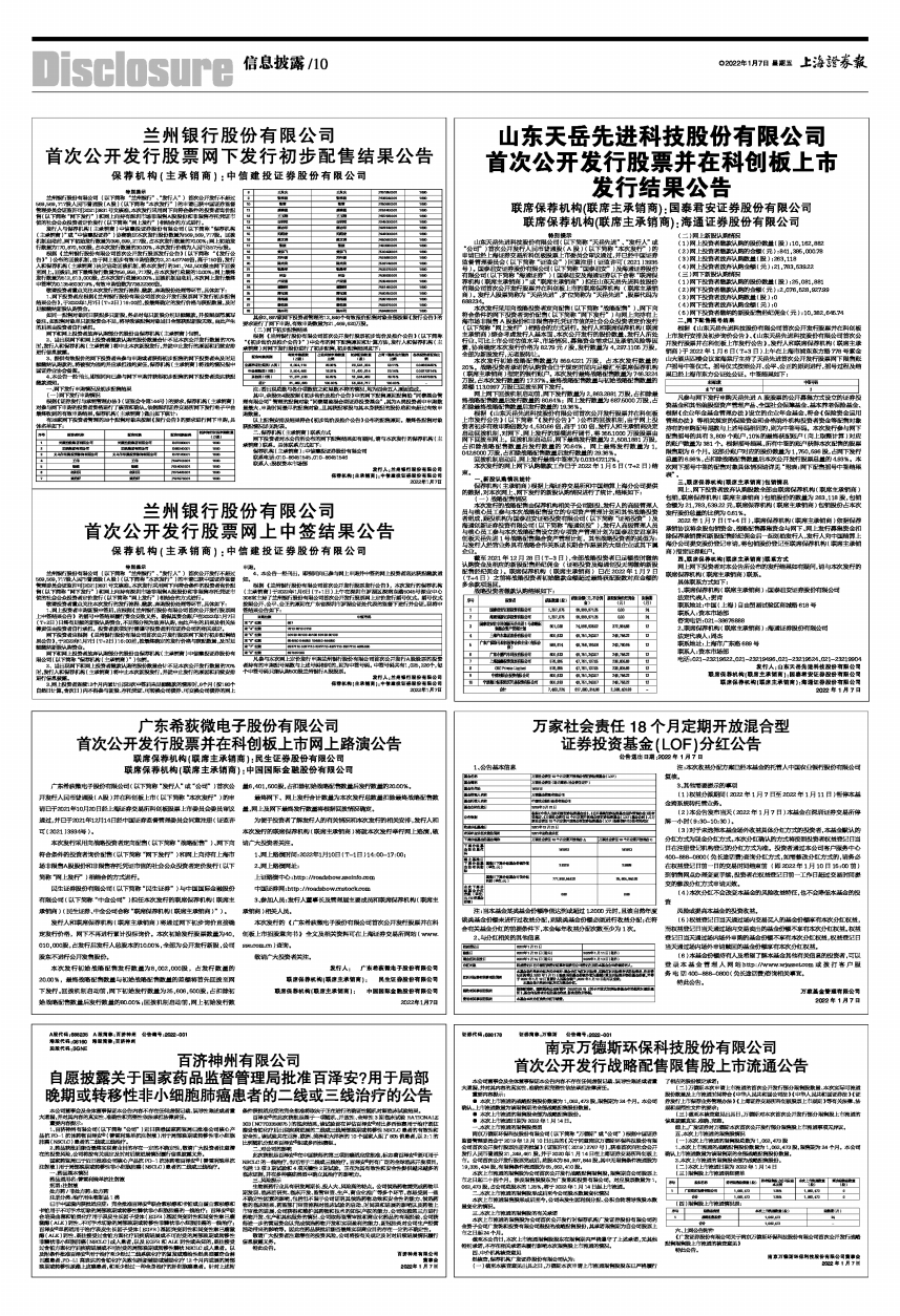 根据《兰州银行股份有限公司首次公开发行股票发行公告》,本次发行的保荐机构(主承销商)于2022年1月6日(T+1日)上午在深圳市罗湖区深南东路5045号深业中心308室主持了兰州银行股份有限公司首次公开发行股票网上定价发行摇号仪式。摇号仪式按照公开、公平、公正的原则在广东省深圳市罗湖公证处代表的监督下进行并公证。现将中签结果公告如下:
