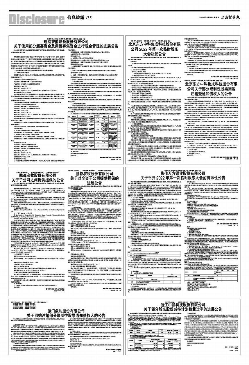 北京东方中科集成科技股份有限公司2022年第一次临时股东