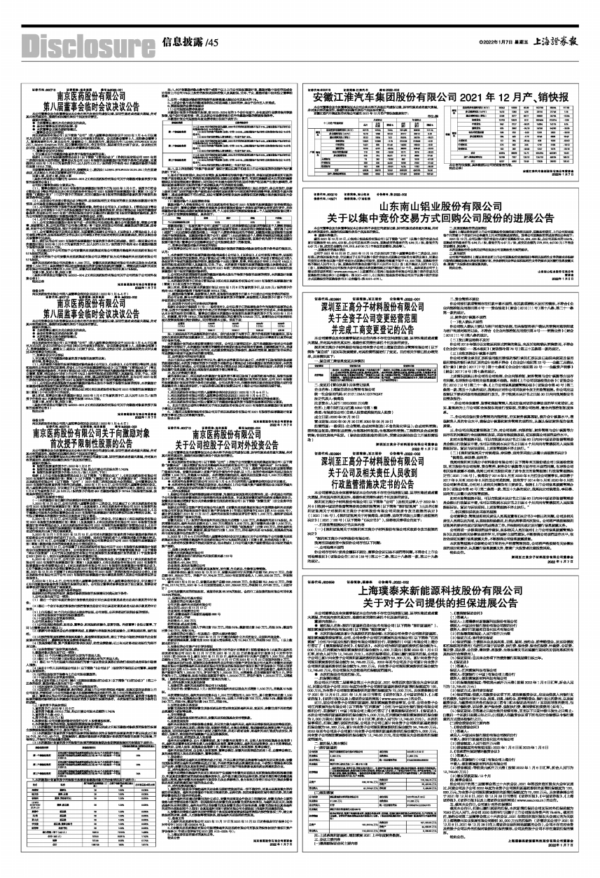 证券代码:600219 证券简称:南山铝业 公告编号:临2022-002
