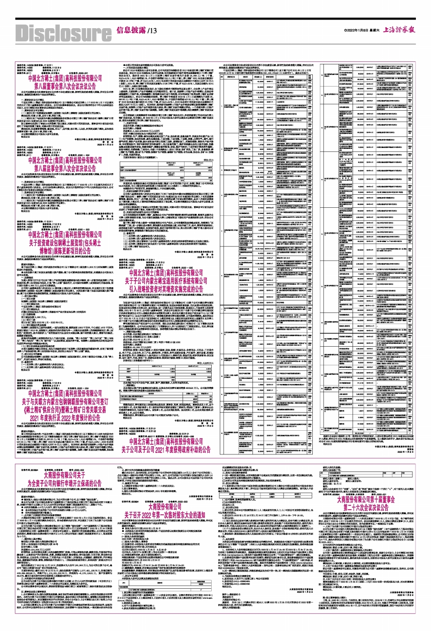 中国北方稀土(集团)高科技股份有限公司(以下简称公司或北方稀土)于2022年1月7日以通讯方式召开了第八届董事会第八次会议。公司全体董事参加会议。会议召开程序符合《中华人民共和国公司法》、公司《章程》和《董事会议事规则》的规定。