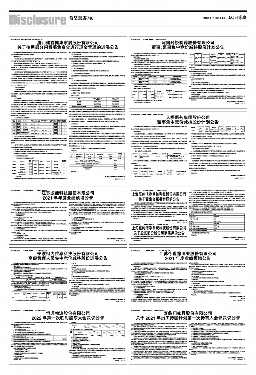 证券代码:603008 证券简称:喜临门 公告编号:2022-001