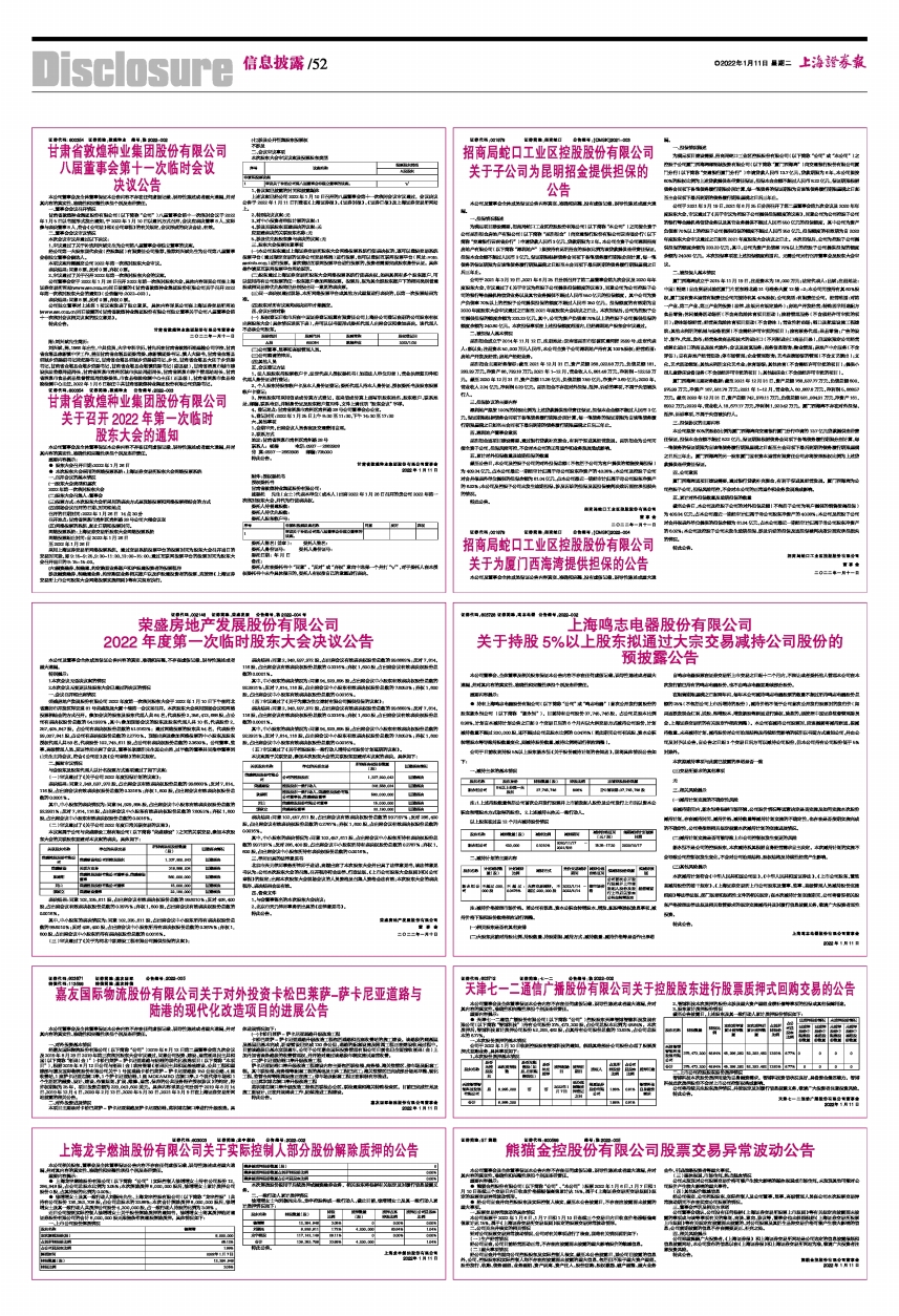 上述议案已经公司 2022年1月 10日召开的八届董事会第十一次临时会议审议通过,会议决议公告于 2022年1月11日刊登在《上海证券报》、《证券时报》、《证券日报》及上海证券交易所网站上。
