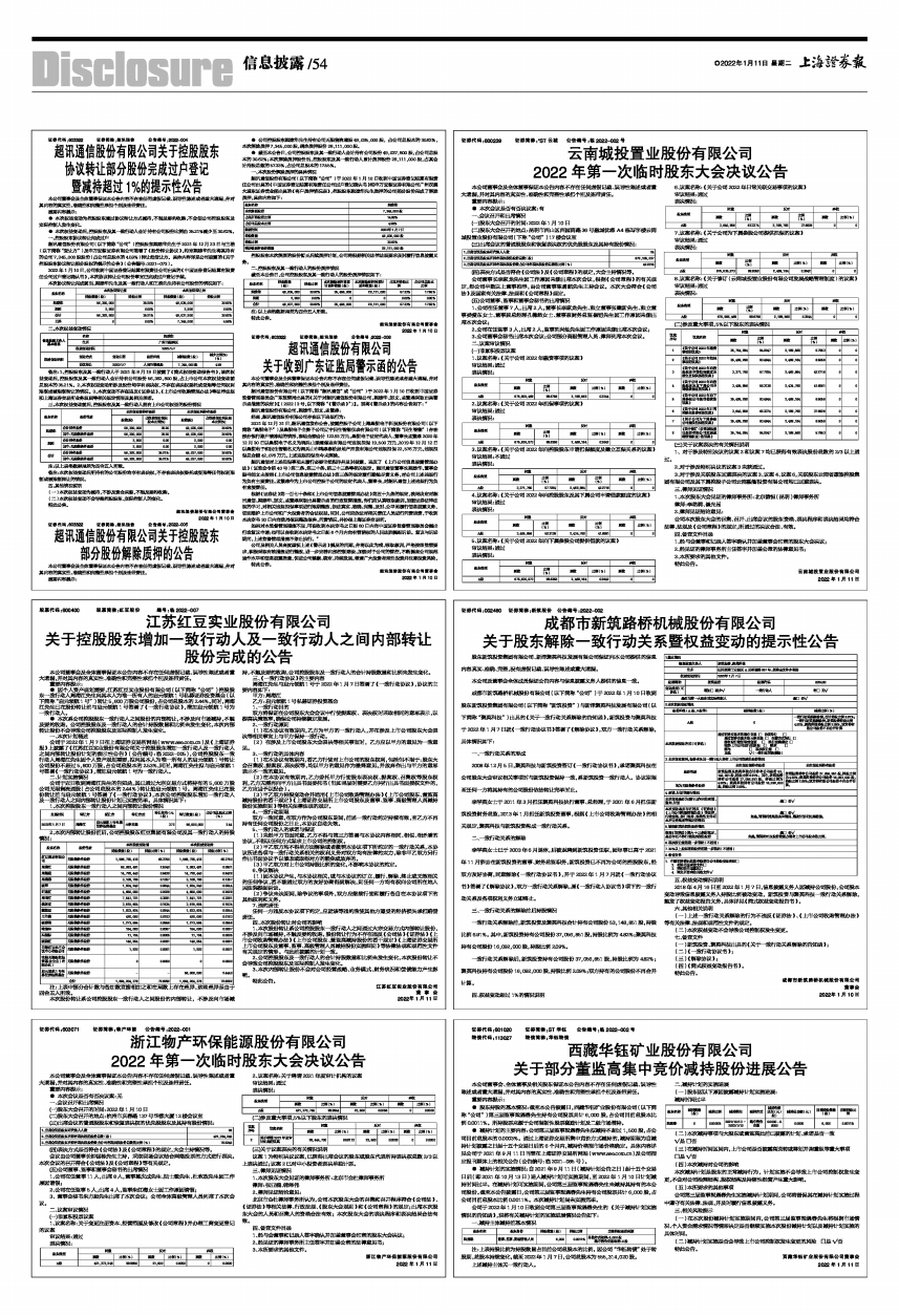 证券代码:603322 证券简称:超讯通信 公告编号:2022-006