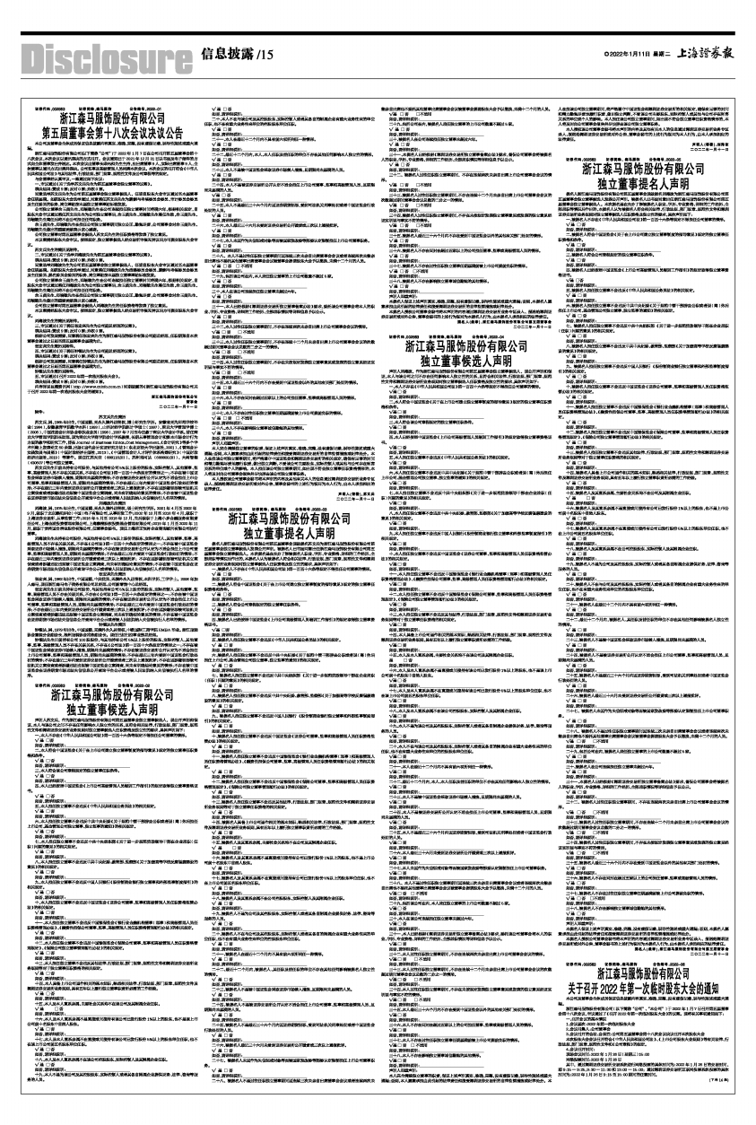 内容详见巨潮资讯网(http://www.cninfo.com.cn)同期披露的《浙江森马服饰股份有限公司关于召开2022年第一次临时股东大会的通知》。