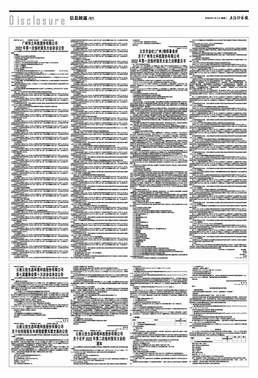 云南云投生态环境科技股份有限公司(以下简称“公司”)拟于2022年1月26日(星期三)下午14:30召开公司2022年第二次临时股东大会,现将本次会议的有关事项通知如下:
