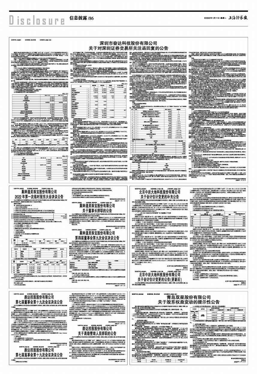 证券代码:002681 证券简称:奋达科技 公告编号:2022-003