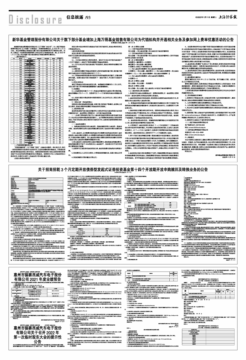 根据新华基金管理股份有限公司(以下简称“本公司”)与上海万得基金销售有限公司(以下简称“万得基金”)签署的销售协议,自2022年1月12日起,本公司将增加万得基金为旗下部分基金销售机构并开通相关业务。同时,为满足广大投资者的理财需求,经本公司与万得基金协商一致,自2022年1月12日起,本公司旗下部分基金参加万得基金费率优惠活动。