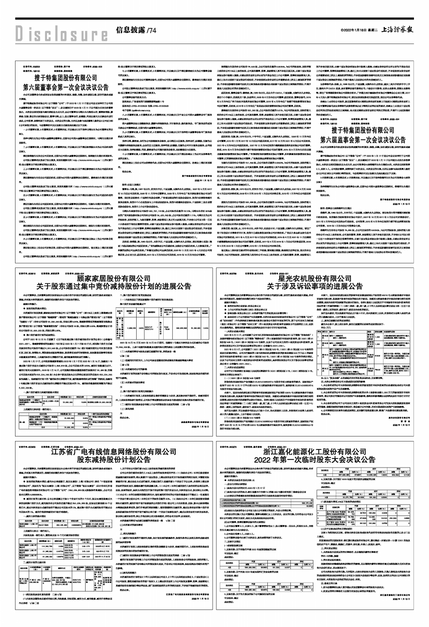 搜于特集团股份有限公司(以下简称“公司”)于2022年1月17日在公司会议室举行了公司第六届监事会第一次会议(以下简称“会议”),会议通知已于2022年1月11日以书面方式向全体监事发出。本次会议采用现场会议方式召开,由公司监事会主席柴海军先生召集和主持。本次会议应到监事3人,实到3人。公司部分董事、高管列席了本次会议。本次会议的召集、召开以及参与表决监事人数符合《公司法》和《公司章程》等的规定。与会监事经审议以投票方式表决通过以下议案: