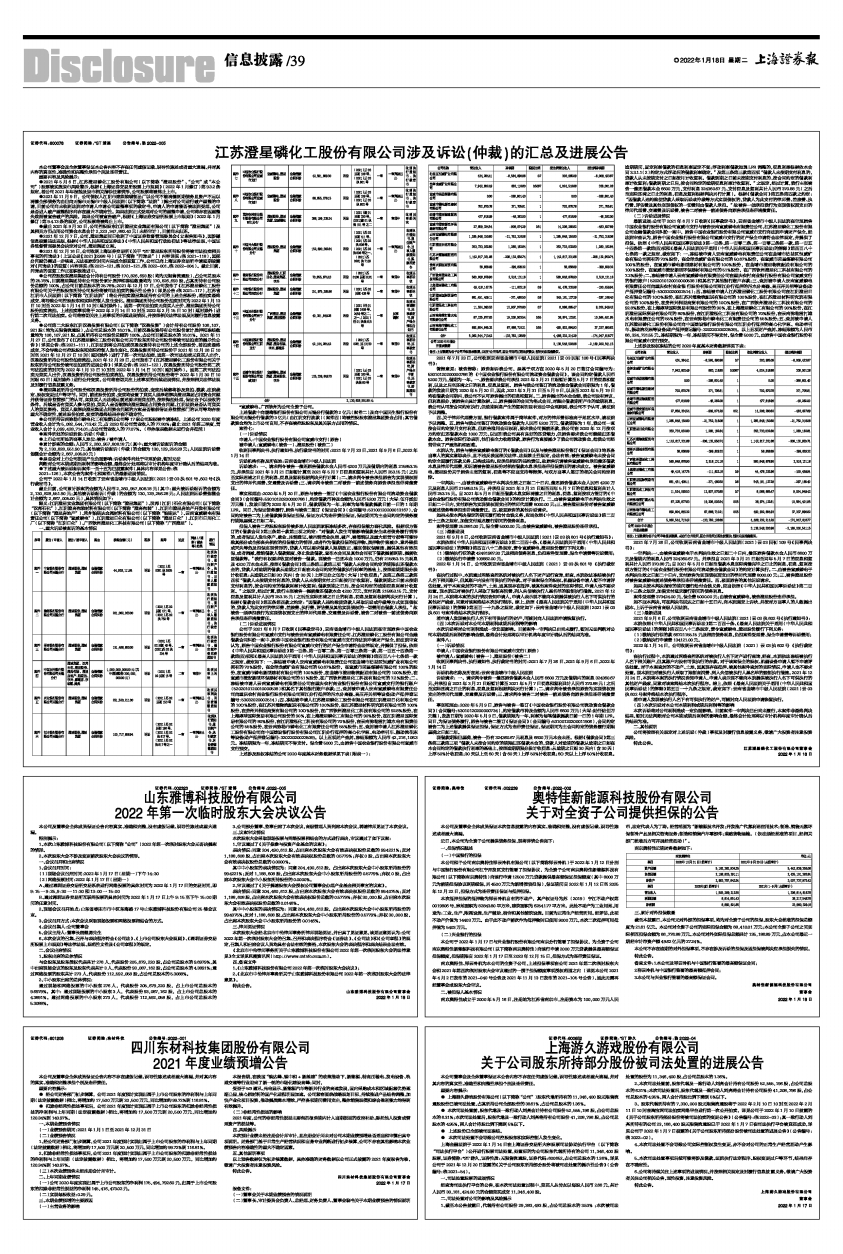 江苏澄星磷化工股份有限公司涉及诉讼(仲裁)的汇总及进展公告
