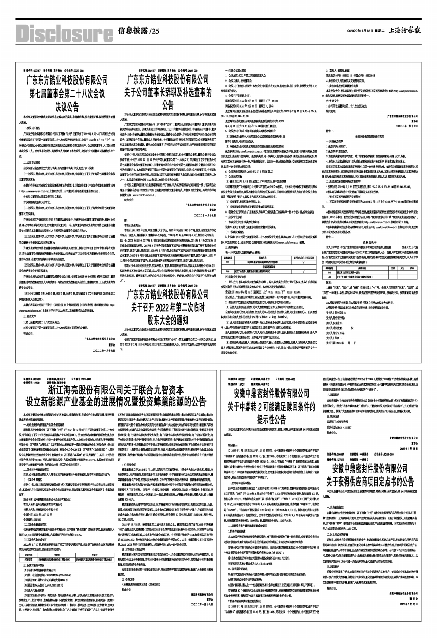 根据广东东方锆业科技股份有限公司(以下简称“公司”)第七届董事会第二十八次会议决议,决定于2022年2月11日召开公司2022年第二次临时股东大会。现将本次股东大会的有关事项通知如下:
