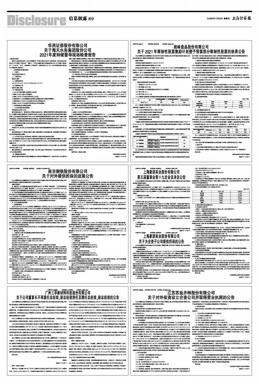 ●预留授予限制性股票登记日:2022年1月18日