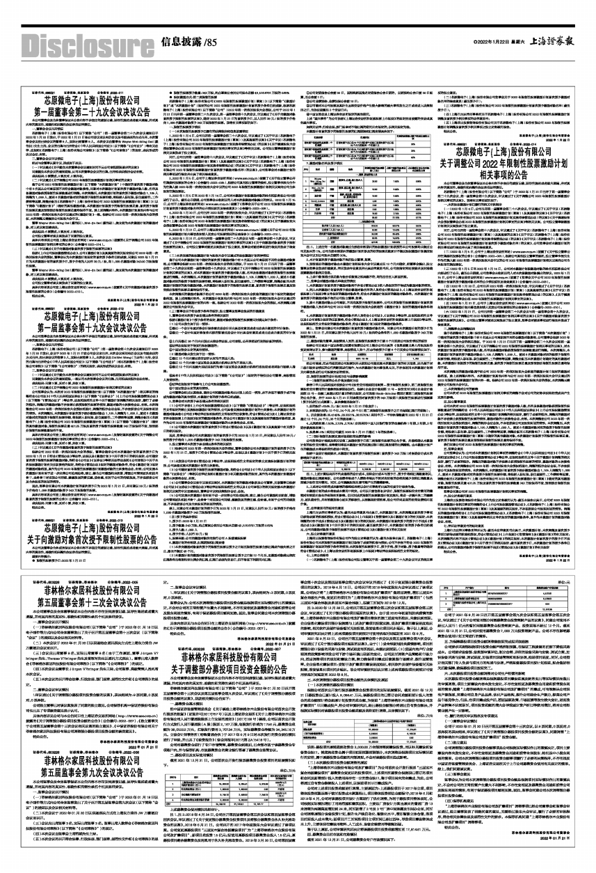 芯原微电子(上海)股份有限公司(以下简称“公司”)于2022年1月21日召开了第一届董事会第二十九次会议,第一届监事会第十九次会议,审议通过了《关于调整公司2022年限制性股票激励计划相关事项的议案》。现将有关事项说明如下: