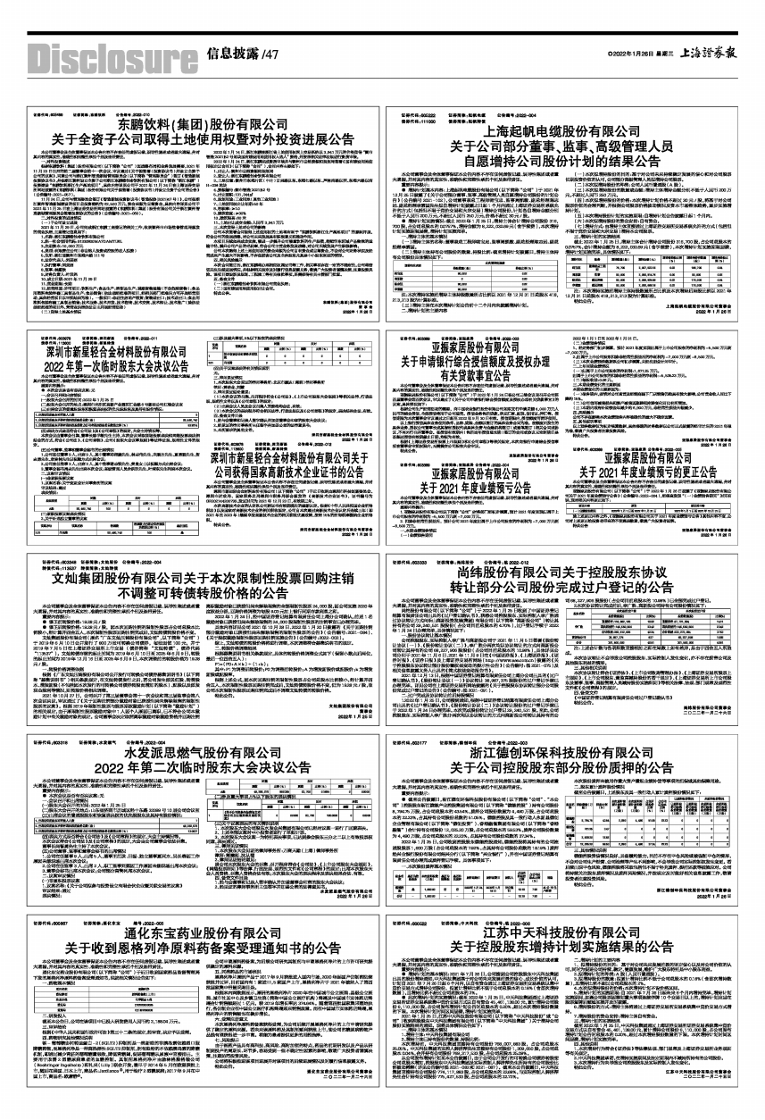 证券代码:603389 证券简称:亚振家居 公告编号:2022-003