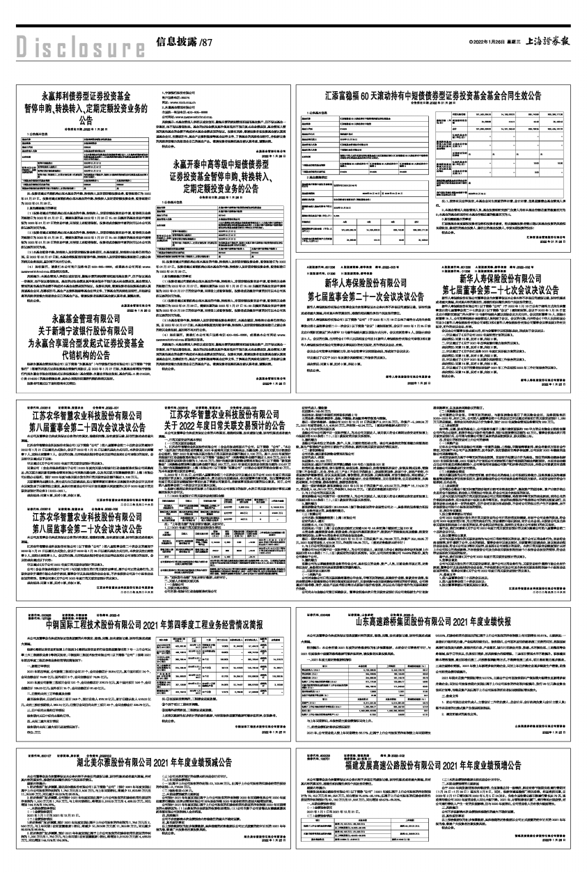 2021年第四季度,公司新签工程项目合同27个,合同金额总计90.84亿元,其中国内项目24个,合同金额合计15.89亿元;国外项目3个,合同金额合计74.95亿元。