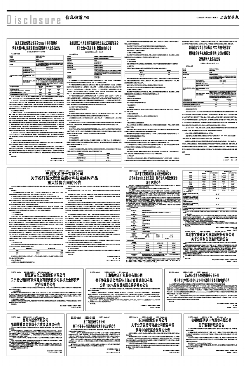 融通汇财宝货币市场基金2022年春节假期前