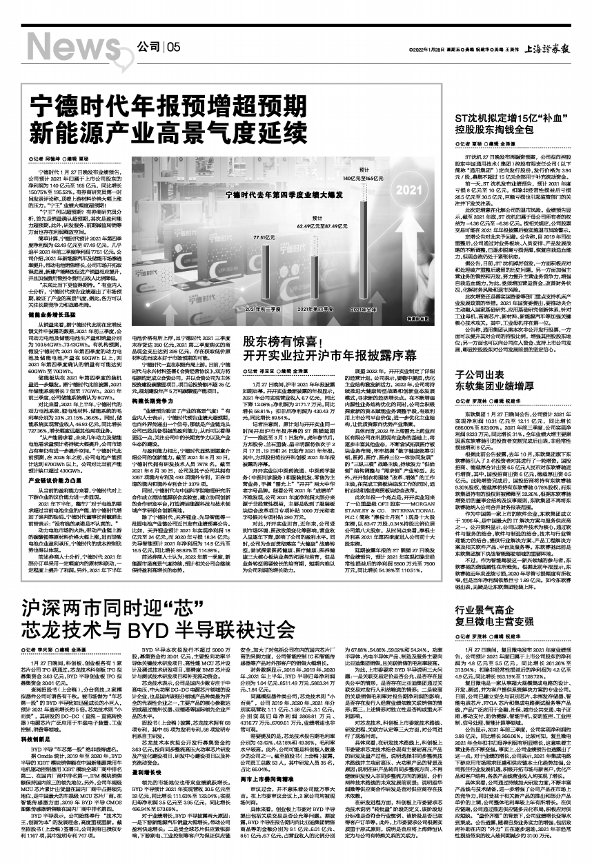 “业绩预告验证了产业的高景气度!”有业内人士表示,宁德时代预告业绩大超预期,也向外界传递出一个信号,那就是产业链龙头公司已经具备很强的盈利能力,从而可以看得更远一点,关注公司中的长期竞争力以及产业生态的建设。
