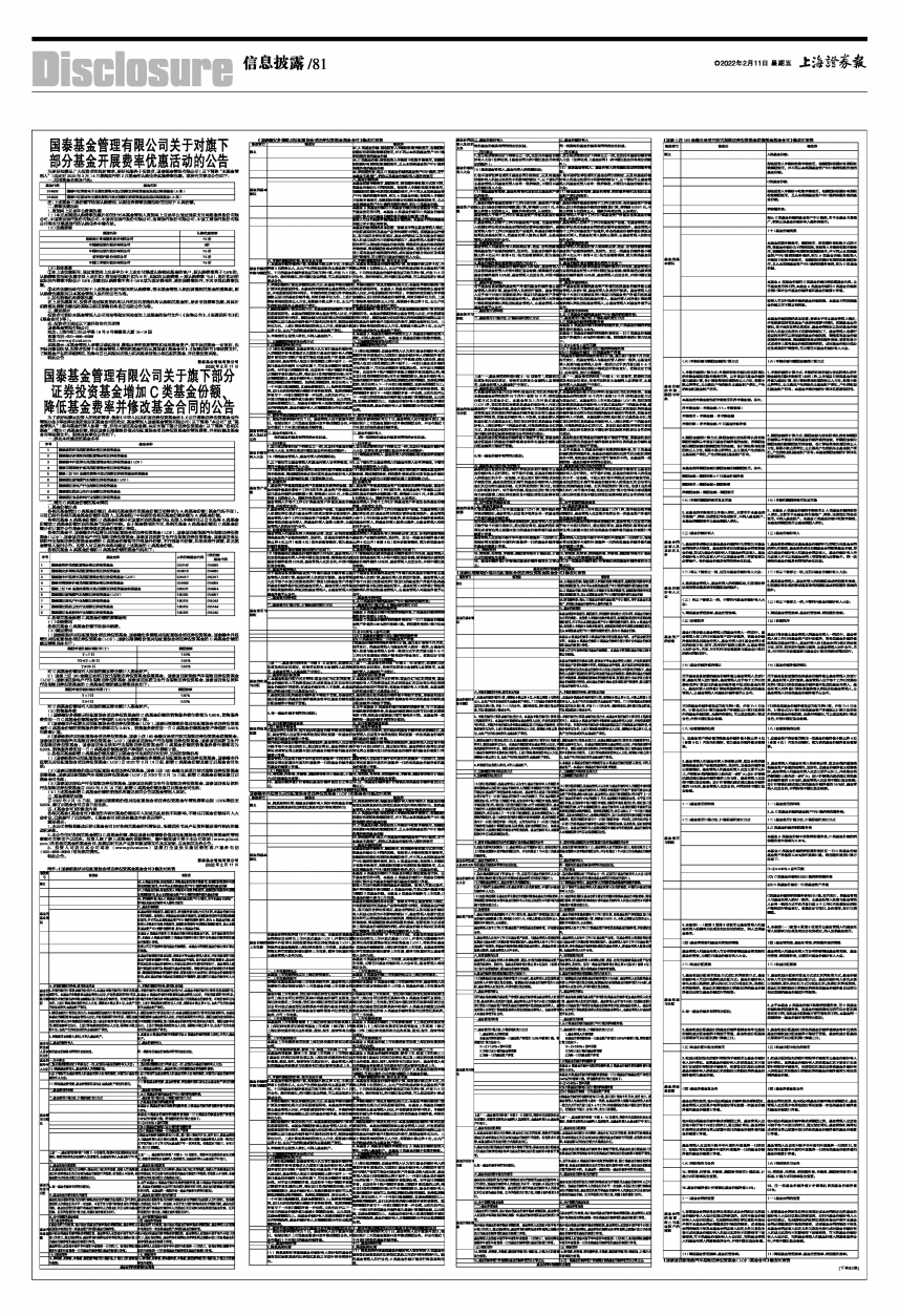 (2)国泰民福策略价值灵活配置混合型证券投资基金、国泰上证180金融交易型开放式指数证券投资基金联接基金、国泰国证新能源汽车指数证券投资基金(LOF)自2022年2月15日起,新增C类基金份额及修订后基金合同生效;
