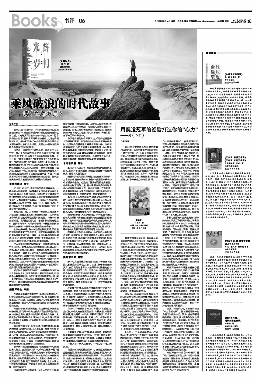 2022年北京冬奥会的比赛正在激烈地进行中。运动员能否在世界级高手云集的竞技场上胜出,除了依靠过硬的技能,心理素质更是起到极其重要的作用。奥运冠军、著名乒乓球运动员邓亚萍在其所著《心力》一书里,对体育竞技中心理素质的重要作用作了生动、透彻的分析。在此基础上,邓亚萍在书中还将心理素质的应用范围进一步推及至人们的日常生活、工作中,为读者提供了有效改善心态、提高效率、增强抗压能力和培养意志力的方法、技巧。