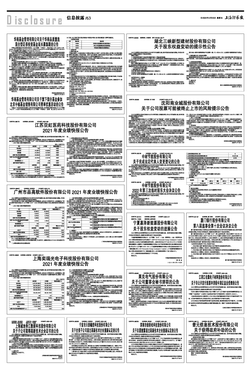 2021年度业绩快报公告 -