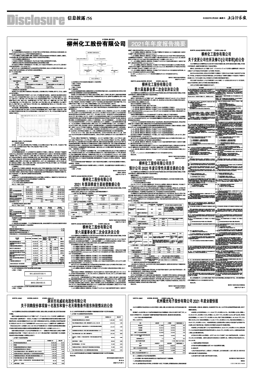 柳州化工股份有限公司(以下简称“公司”)第六届董事会第二次会议于2022年2月24日在公司会议室召开,会议应参加表决的董事7人,实际表决的董事7人,公司监事及高级管理人员列席了会议,本次会议符合《公司法》和《公司章程》的有关规定,会议由董事长陆胜云先生主持。
