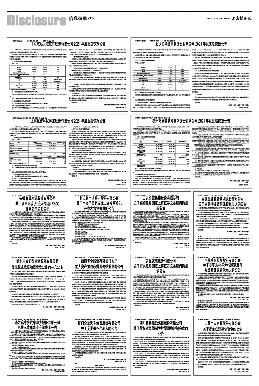 上海复洁环保科技股份有限公司2021年度业绩快报公告