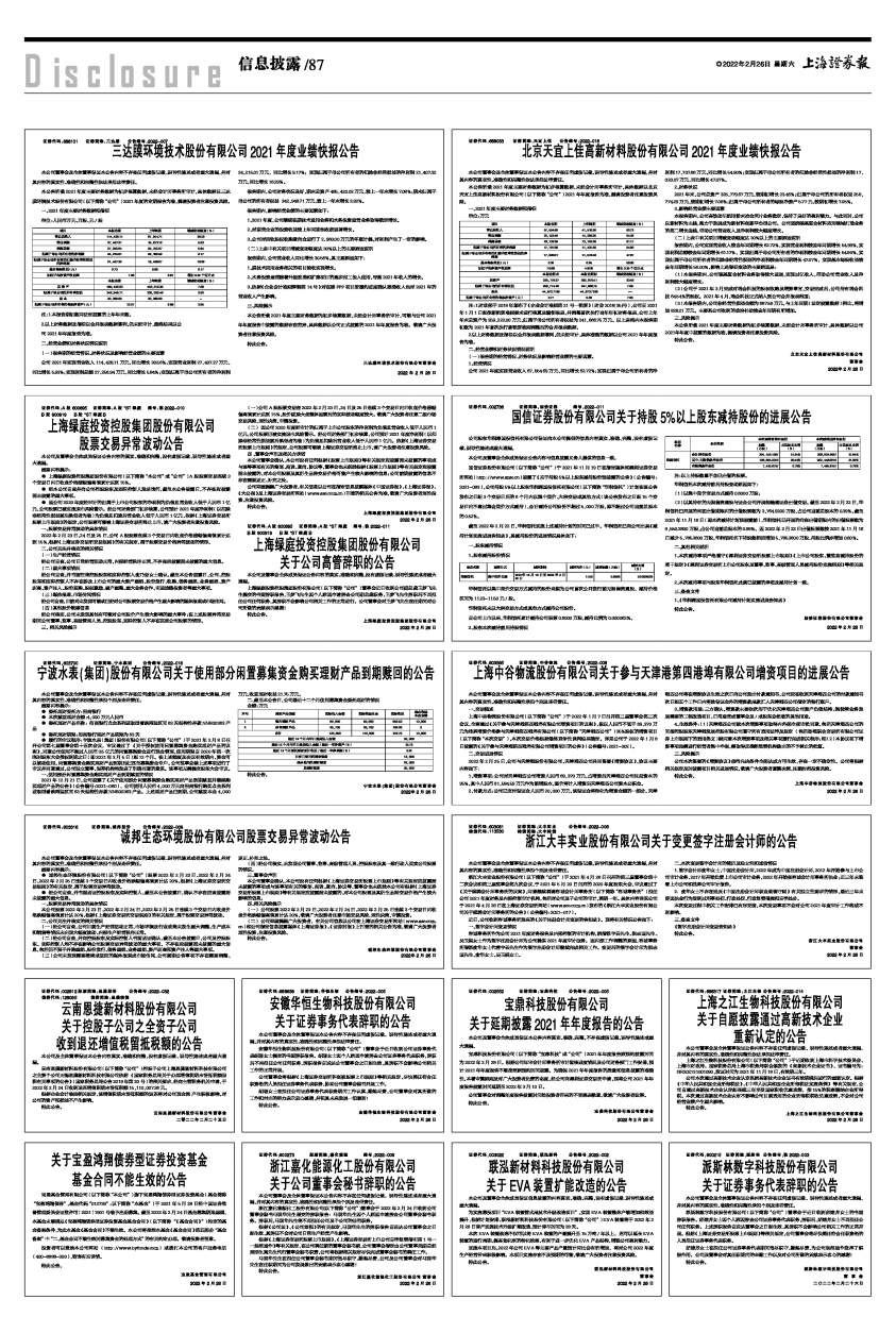 北京天宜上佳高新材料股份有限公司2021年度业绩快报公告