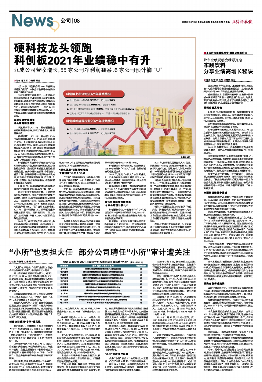 2月28日,科创板公司2021年业绩快报悉数“报到”,一张全年业绩稳中有升的硬核“成绩单”亮相。